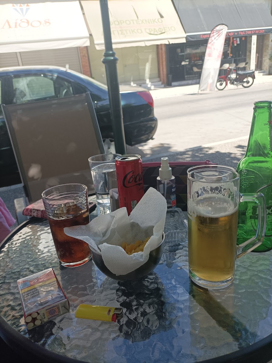 But coffee is just the beginning. Their menu is an exciting blend of delightful snacks and refreshing drinks. You can’t miss their Σφολιάτες, especially the Κουλούρι Θεσσαλονίκης, a perfect snack that balances a slightly sweet and savory flavor. Priced at just €0.70, this treat embodies the essence of Greek snacking.